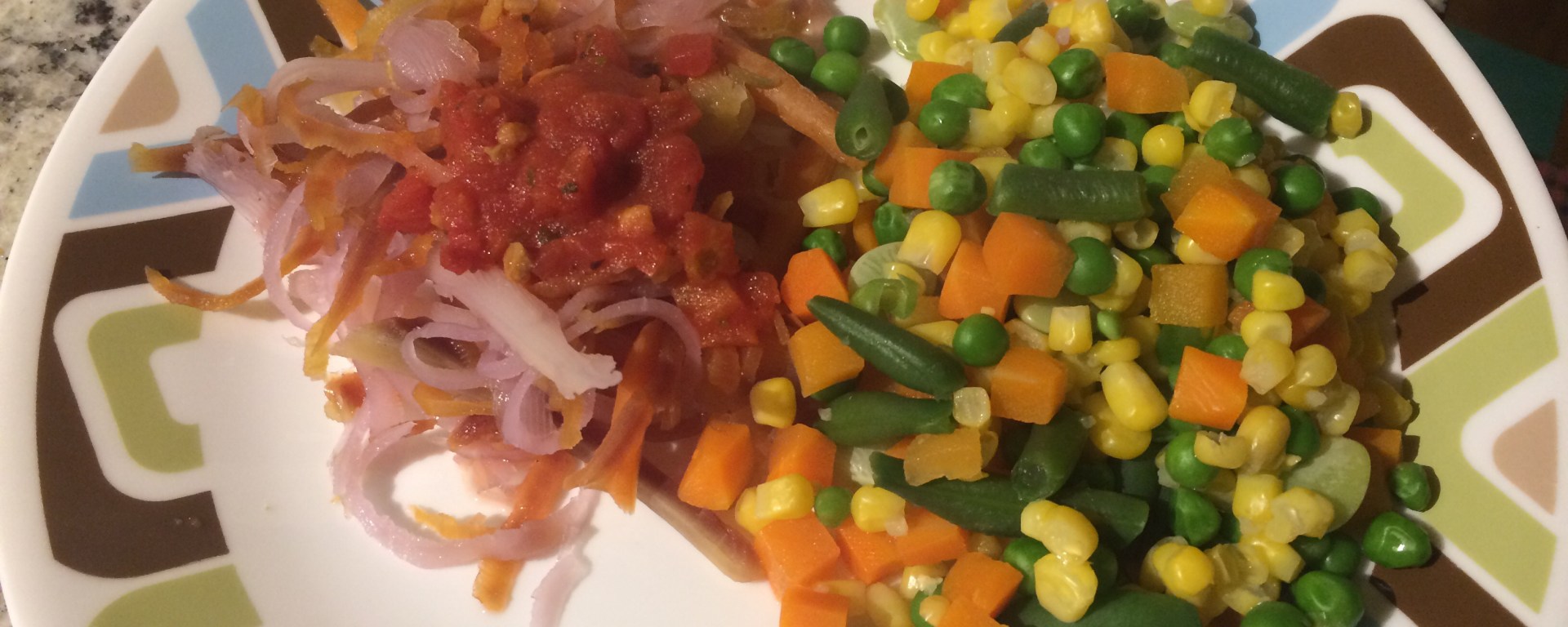 Today is my second Veggetti Variation – I haven’t used it that much because I have so many other options for food! Like using my crockpot to make stews, making some of my favorite cookbook recipes, eating at my parents’ or on the go. BUT I still love the fun that comes with the Veggetti! I bought some assorted carrots at the local farmer’s market this past weekend, and just had to use them to make some pasta 🙂 I had never eaten PURPLE food until I sliced the carrots up! I did end up slicing my finger as well, the carrots are much skinnier than zucchini or squash. The cover image is my dinner of the Colorful Carrots Creation (with a side of veggies) and I wrote a haiku below.