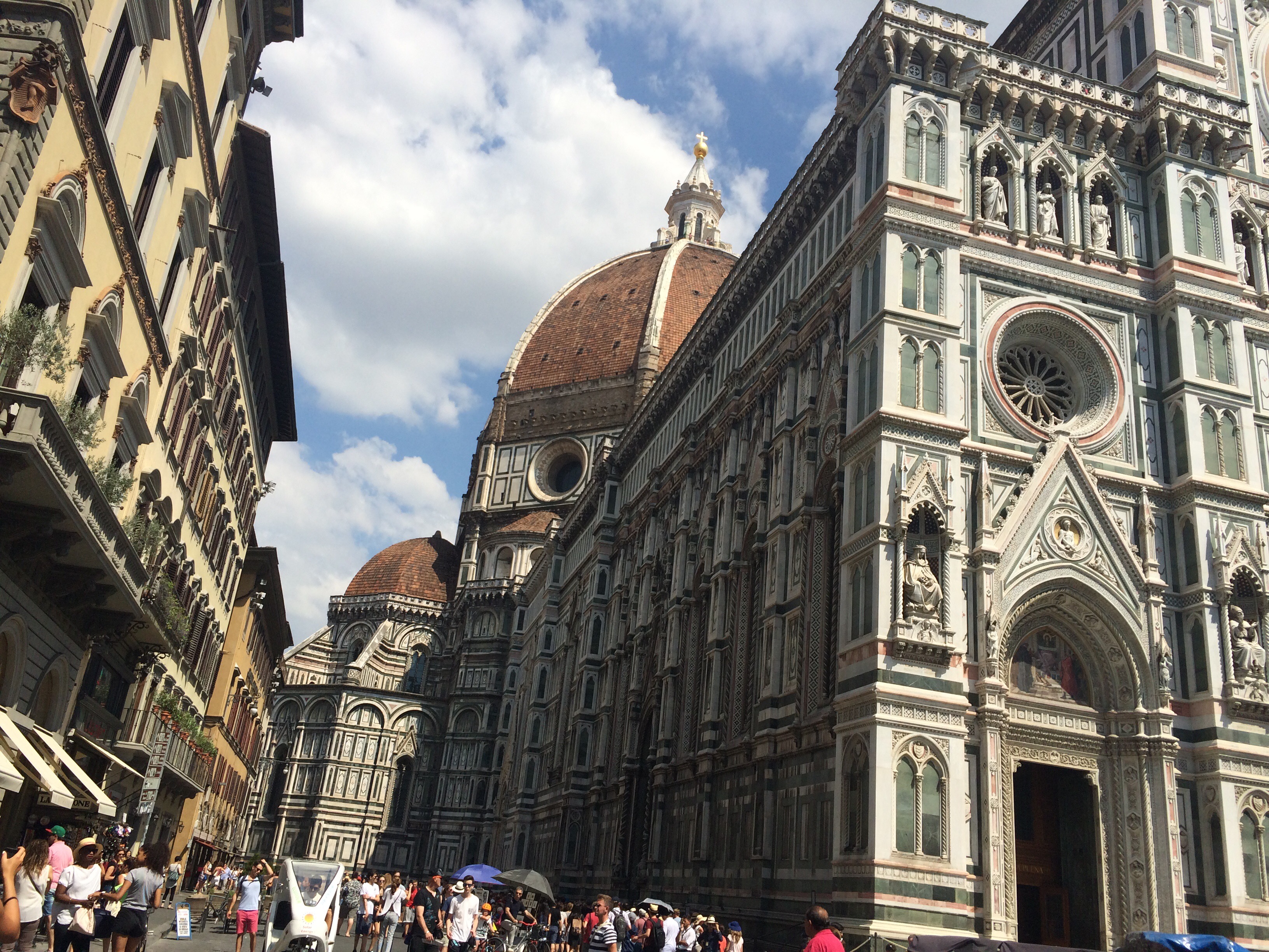 It is very hot here, and my brain and body are quite exhausted. I want to take an easier way to describe this day, compared to DAY 1. I have made a bulleted list of the places we went with some pictures and details underneath. The main event of the day was getting to the Duomo and Campanile when they opened (around 10) to beat some of the tourists. We decided to find a place to go before the Duomo to make the most of the day, and start ahead of the game with our list!