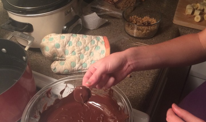 Dark chocolate melted over boiling water Chopped bananas dipped into that gooey candy Sprinkle with walnuts and sea salt Freeze… Follow these simple steps to make delicious treats on a stick 🙂 Continue reading Frozen Banana Bonanza!