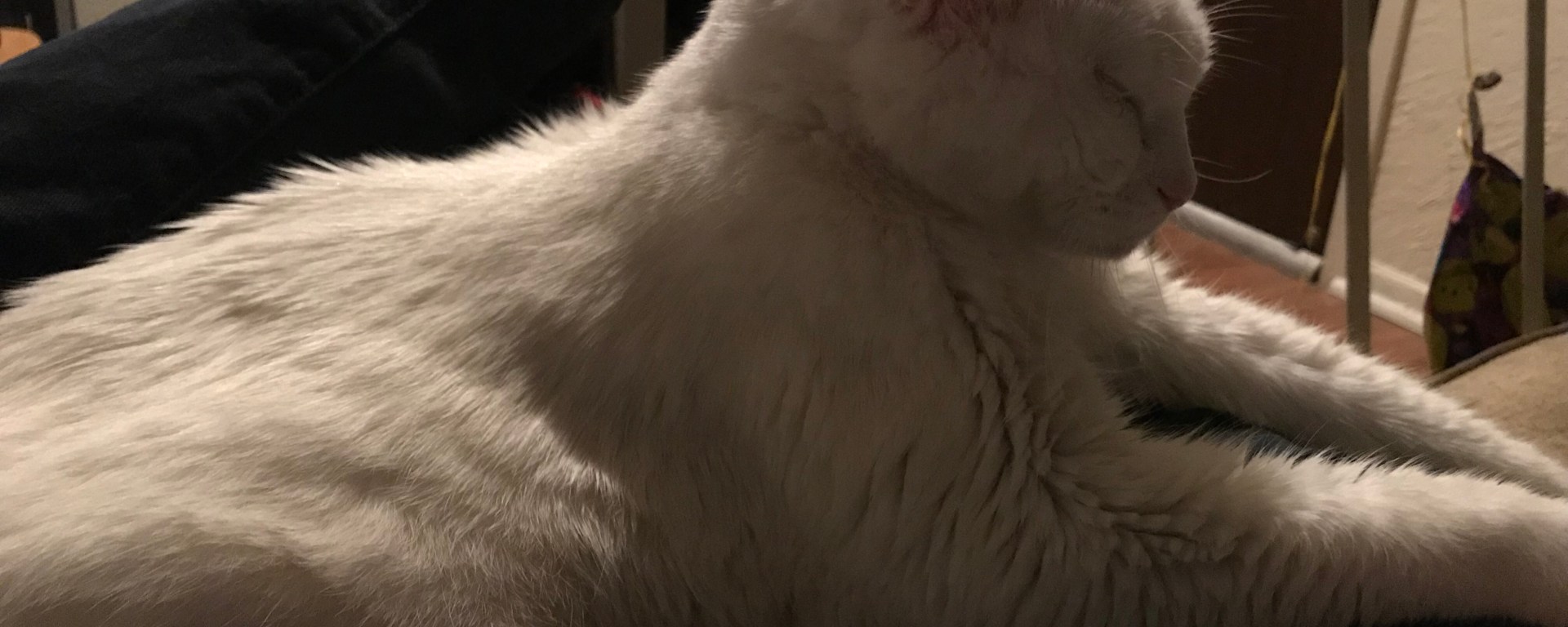 Anyway, while she was away, I found myself in the care of a friendly man in the evenings. He showed up one day with Mom, and she showed him where I eat and the snuggly bed; and the next thing I knew, he was here and she had left. I enjoyed the quiet around the place during the days (Nathan and Mom like to sit with me and talk to me for hours on end!) And the nights were pretty similar except this man would come and give me food and sleep on Nathan and Mom’s pillows with me.