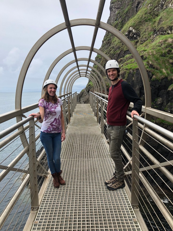 After a restful first day, we were up and out for 8:30 to complete a top tourist attraction in my grandma’s town, The Gobbins Hike. With correct footwear of hiking boots checked, we are given our helmets and safety briefing before boarding the van. From the first steps, you are surrounded by the dreamy glistening ocean and vivid green cliffs!