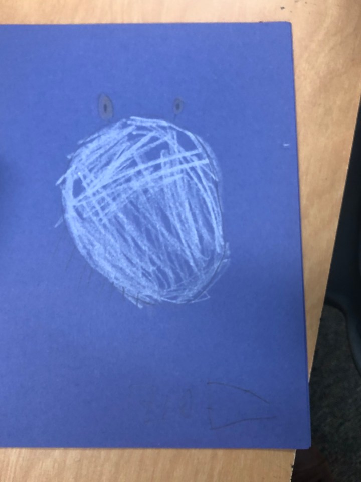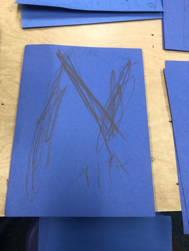 Today they had to trace their left and right hand in pencil and then they got to color it. They were all so focused on making sure they were tracing the correct hand (the pages were labeled) and then creating colorful fingernails or interesting designs!