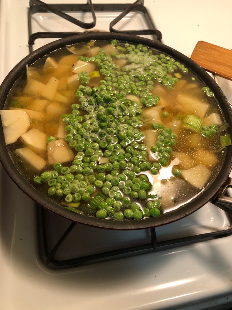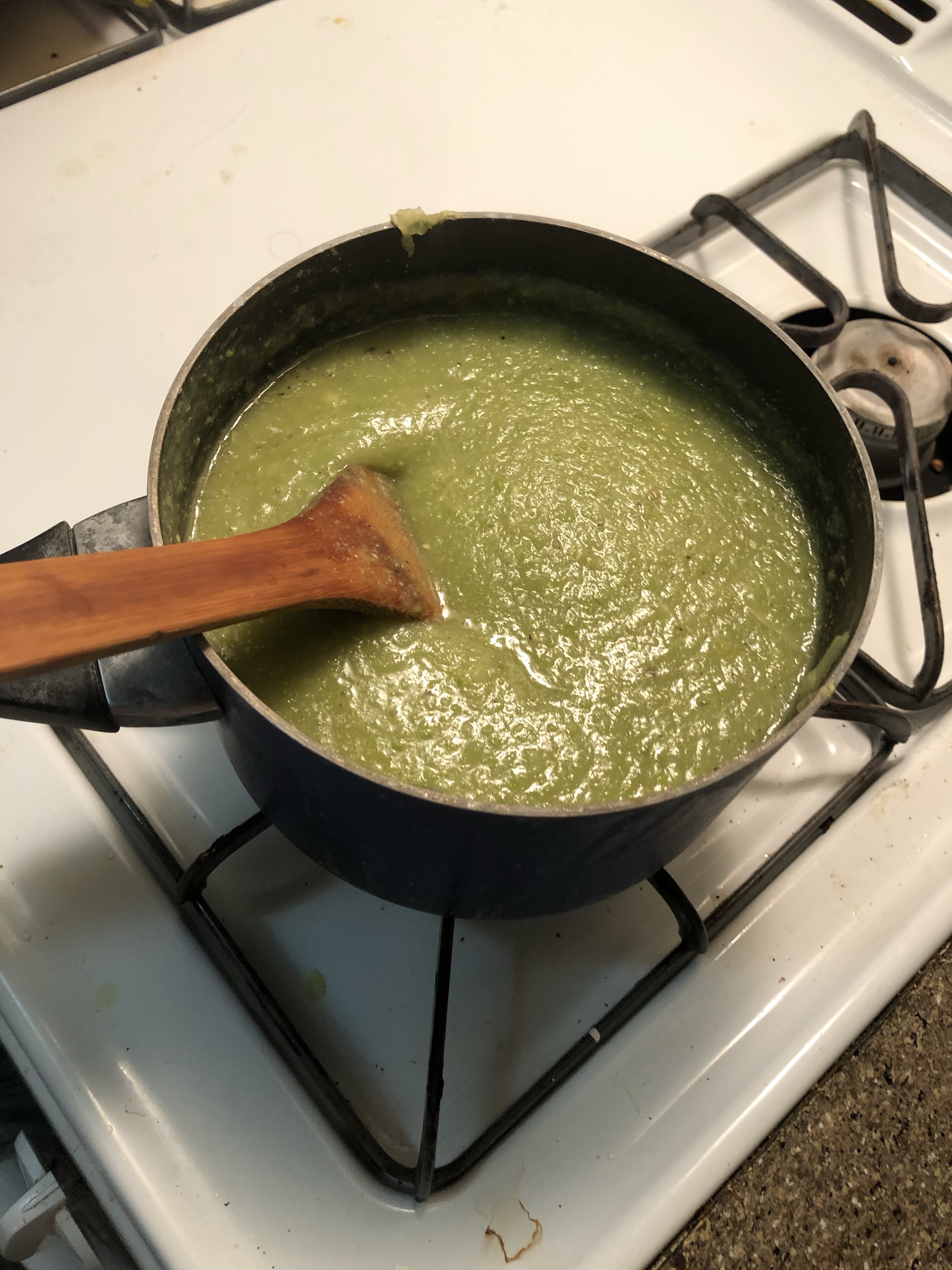 This soup was so good!! You could taste the potato without the peas being overpowering. And after chopping everything, you’re just waiting for vegetable broth to boil with the veggies (which is about 15 mins).