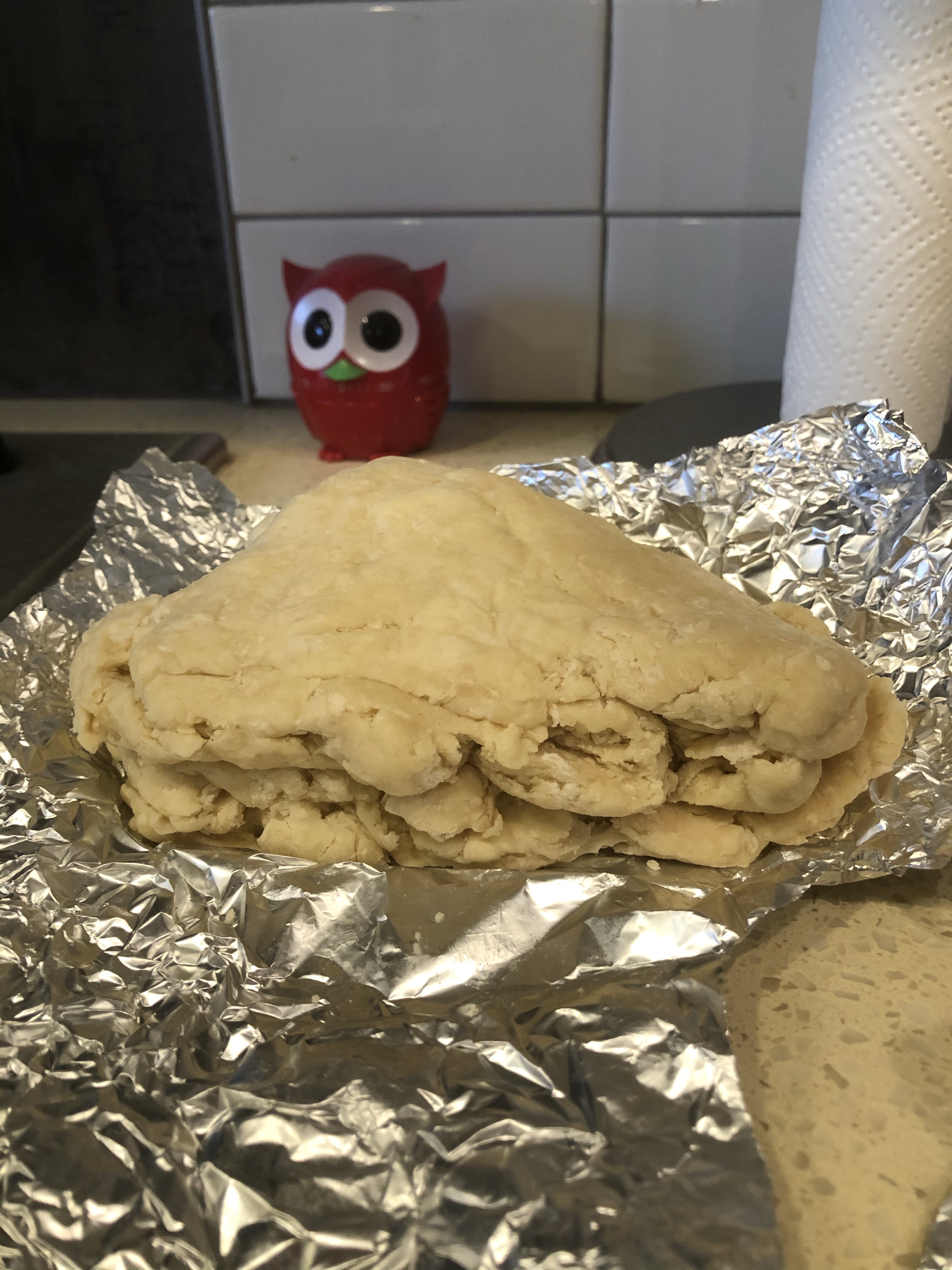 Baking is a very cool process because you start with some flour and butter and it becomes something edible after some fine tweaking and in this case, quite a few hours. I decided to make rough puff pastry today 🙂 It has always excited me because it is a pretty complicated process and is often on “Bake Off” – you have to fold the dough over and over and chill it for 30 mins in order to make layers with the butter spread throughout.