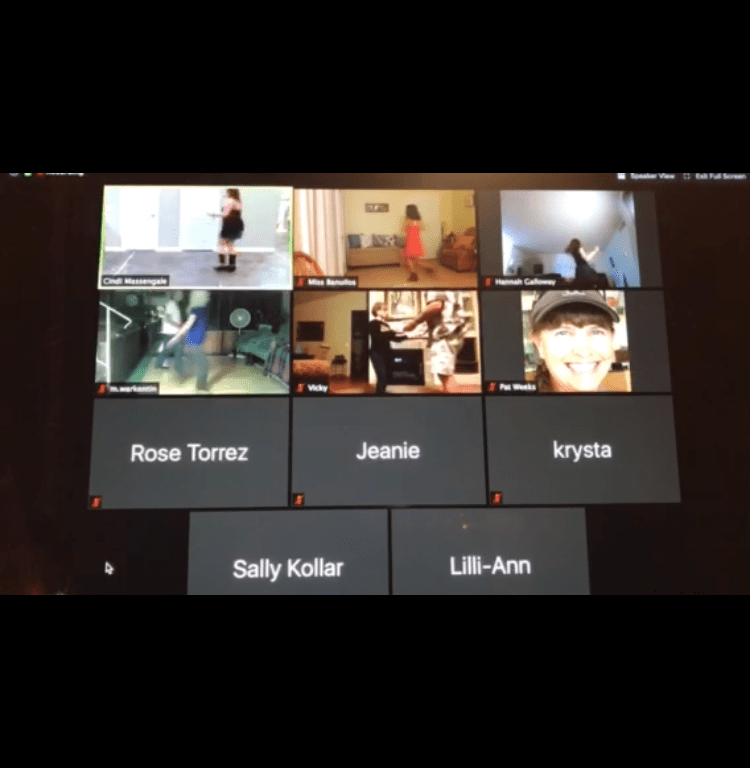 There is also an added bonus to dancing at home – Patches loves to gently be bounced around so he got to be a star on zoom for a bit as well haha!
