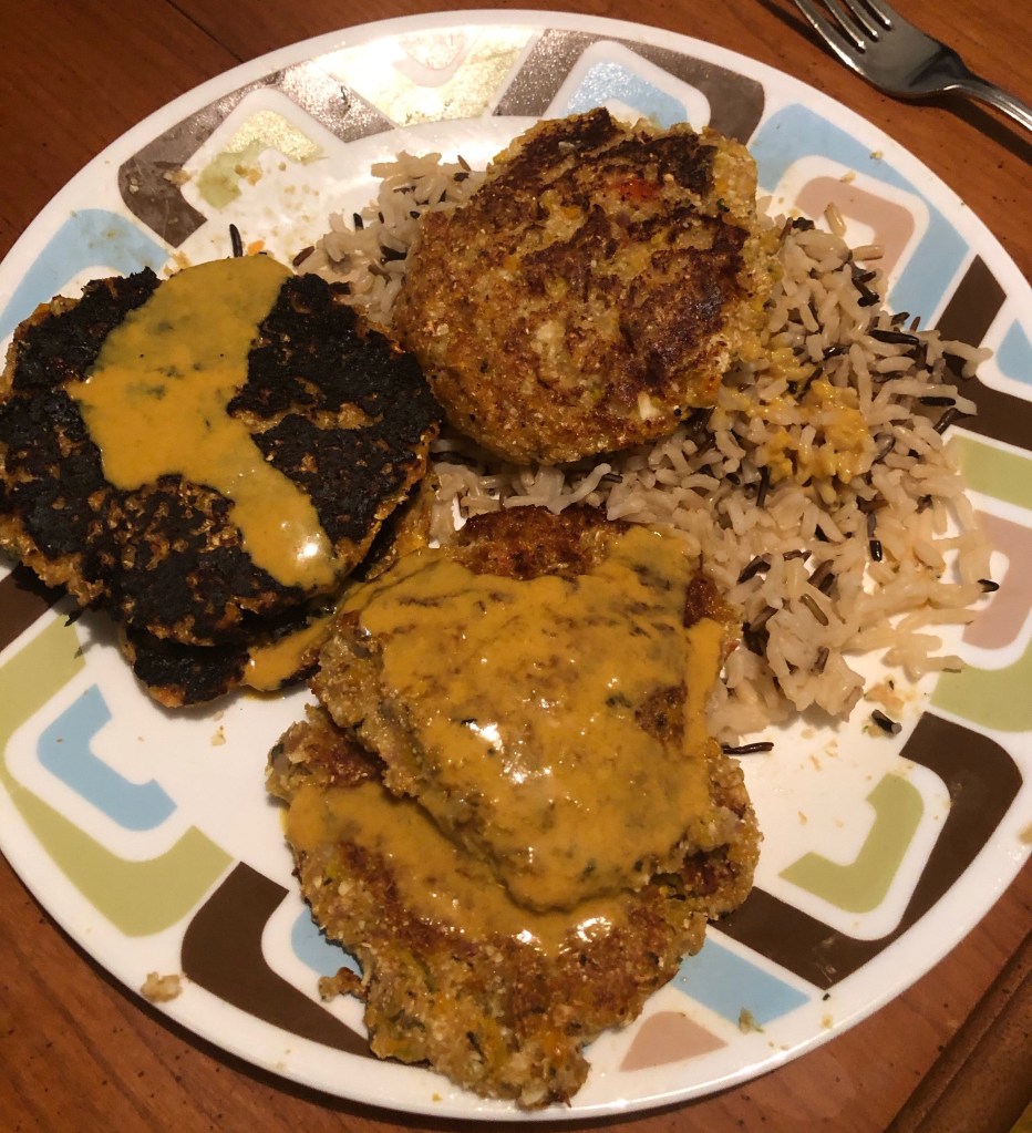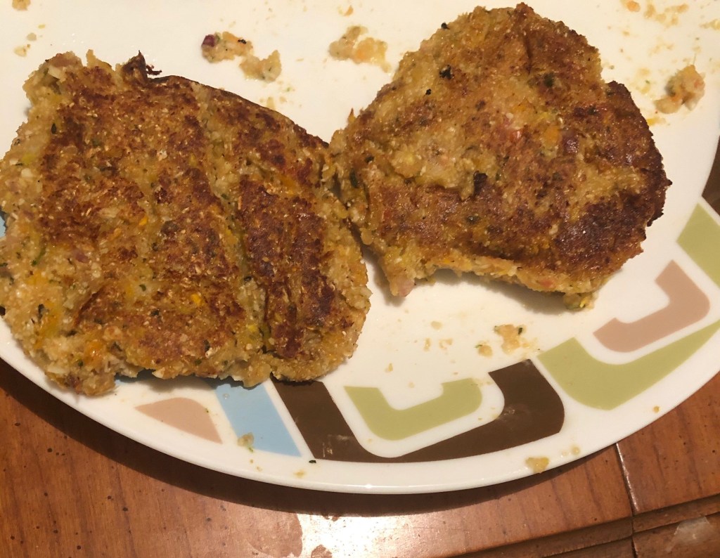 I got this idea from cooking recipe dinners for my nannying job – they have a company called Green Chef send them prepped ingredients and recipes. Many of the ones I have made were versions of veggie patties. I took one of the recipes home with me to know the correct amount of flour and breadcrumbs versus dressing to add 🙂