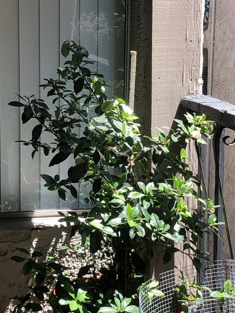 My gardenia tree makes me smile every time a new bud blossoms!