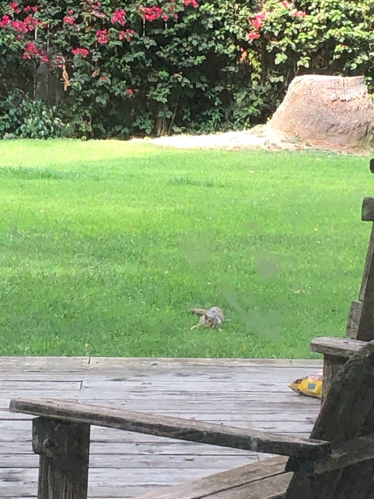 Where I nanny, there is a HUGE backyard with overgrown trees and bushes all around. This means it’s ideal for wildlife.