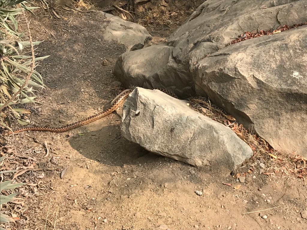 We were warned of the last critter by hikers coming back from the end of the trail. It was very unique to see one just lying on the heat of a rock and enjoying being mostly hidden!