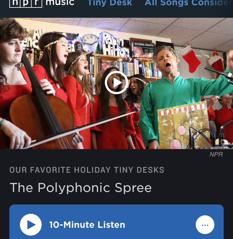 A few years ago (might be more now!), we saw a Christmas concert of Polyphonic Spree – seeing this Tiny Desk appear on the NPR site reminded me 🙂