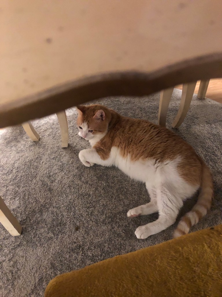 1. He just joined our family a month ago and was originally a mostly outdoor cat so us and the house is new to him. So it can be overwhelming but I’m so glad he is settling in!