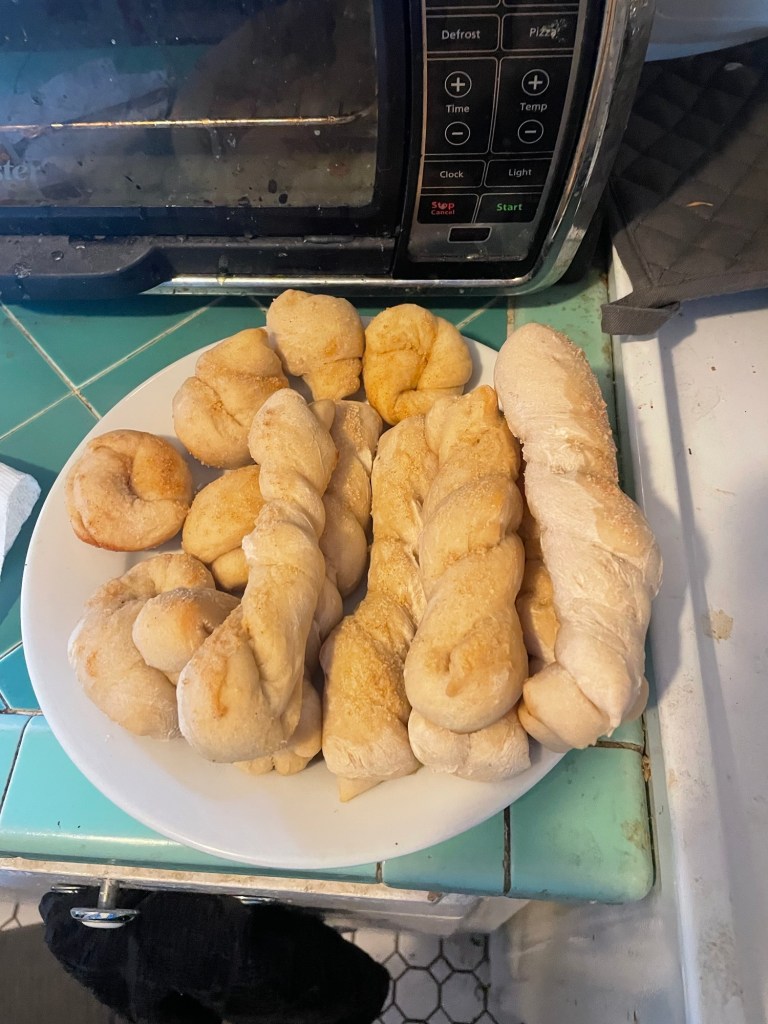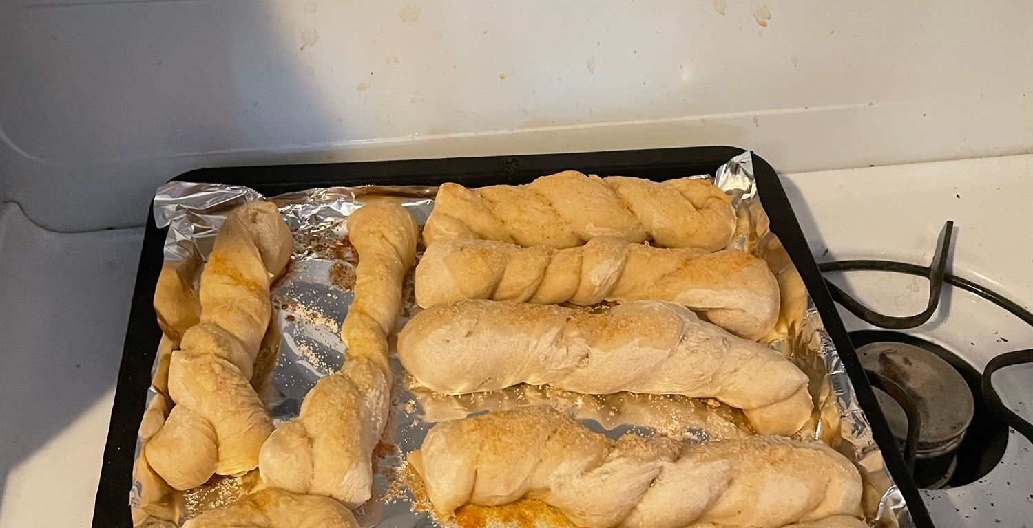 I decided to make garlic breadsticks – I’ve made breadsticks before and it doesn’t require new ingredients we didn’t have in the house.