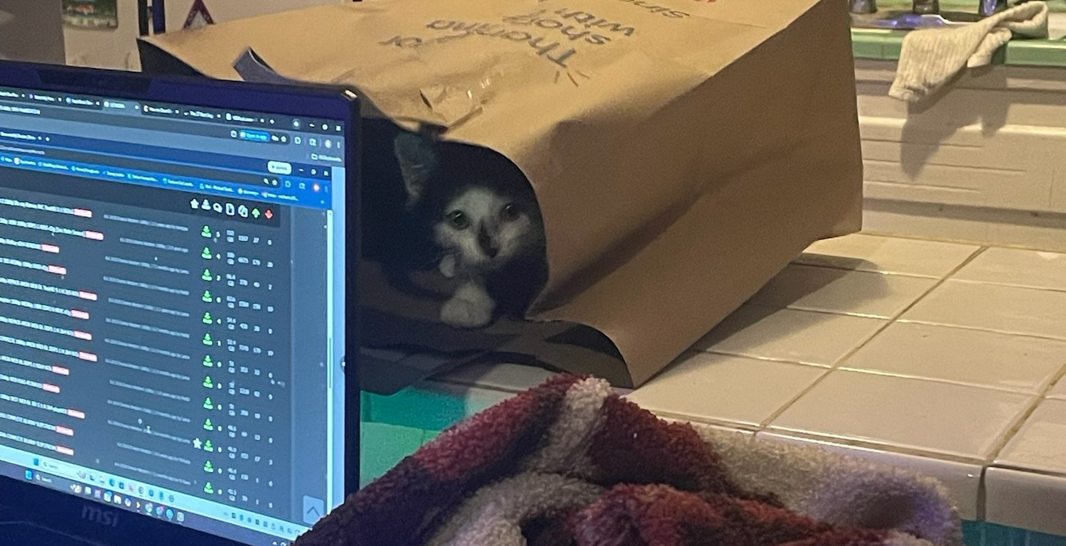 My adventure to a better life started when a wonderful vet tech heard my squeaky cries in a bush. She gave me a yummy fish gravy and took me home! I have been dubbed PipSqueak (I hear Pip most often).