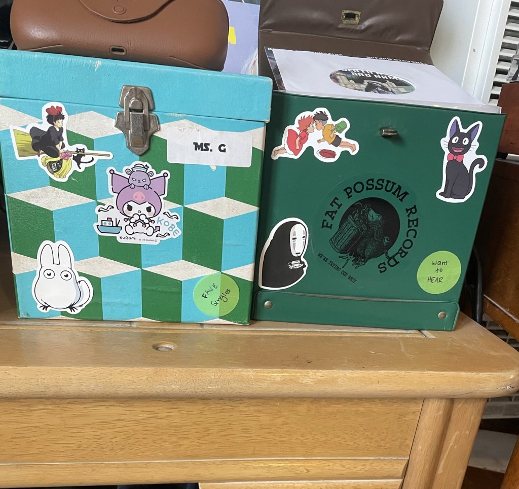 I plan to put some on my school notebooks too – but I started with the boxes for 45’ singles 🙂