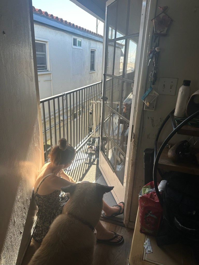 I look forward to the next time I can do this. I only came sprinting inside when someone next to us opened their door, and Mom unhooked me from the leash and harness.
