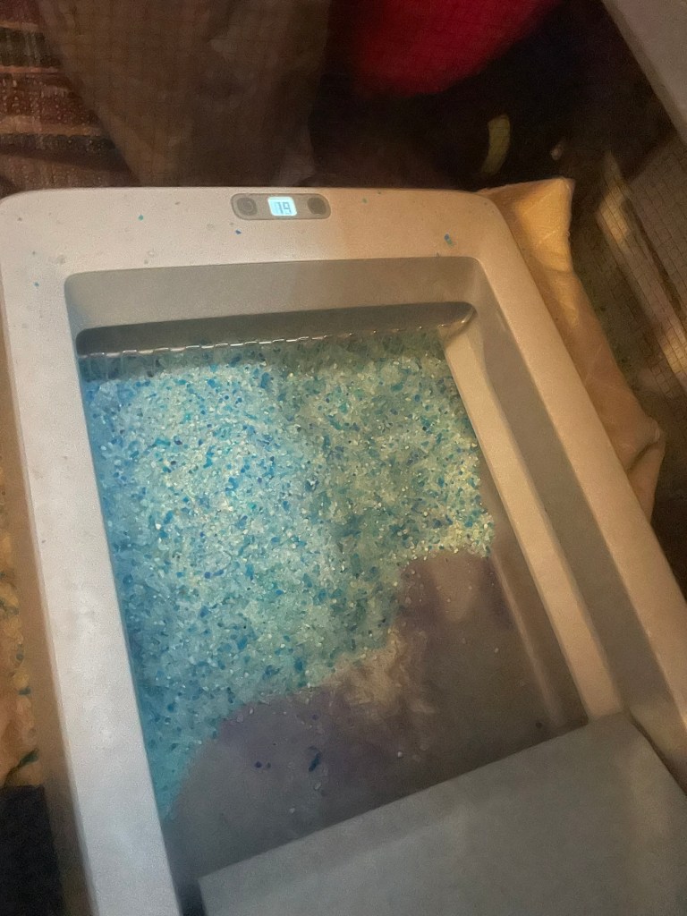 Luckily it’s an easy fix of flattening the litter back down with the scoop.